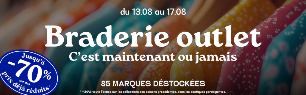 *Remise sur l’article le moins cher des deux sur les articles bradés.